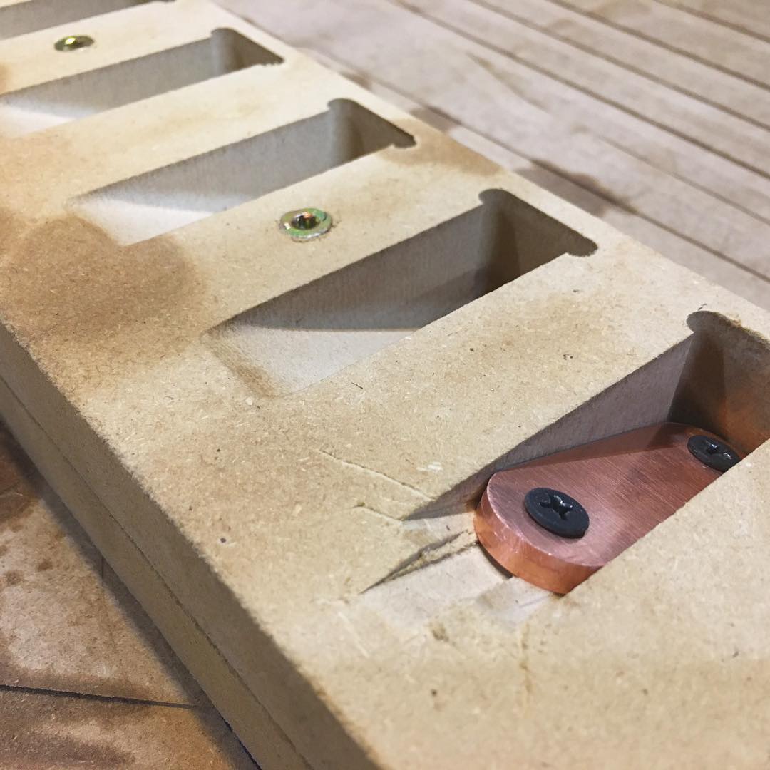 In it’s home it goes #jig #wip #rhino3d #copper #metalworking #brackets #rhinocam #cnc #cncrouter #cncrouterparts