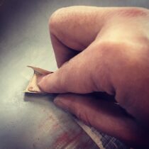 Turning the digital to analog. #protip use a slice of a #bondo spreader, behind your sandpaper, to evenly sand inside curves #ceramics #moldmaking #shopvibes #wip #3d #3dprinting #rhino3d #sanding 4 days #layers